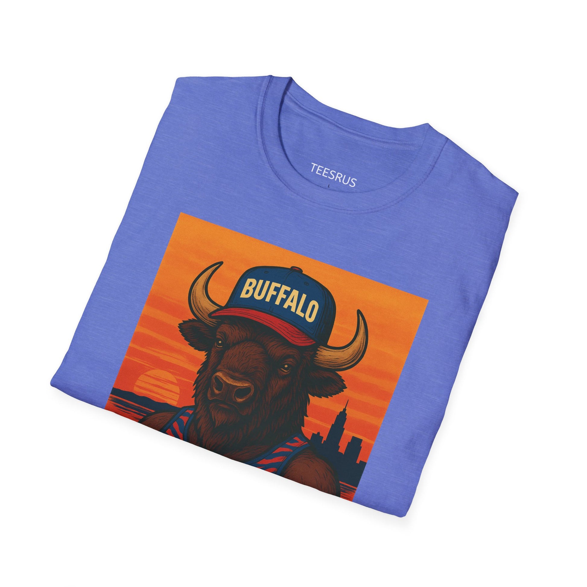 A trendy and fun buffalo summer tee that will add a playful touch to your wardrobe. Perfect for those who love unique and quirky designs. Ideal for casual outings, summer picnics, and outdoor activities. Relevant to those celebrating summer, wildlife enthusiasts, and anyone looking to make a statement with their clothing.