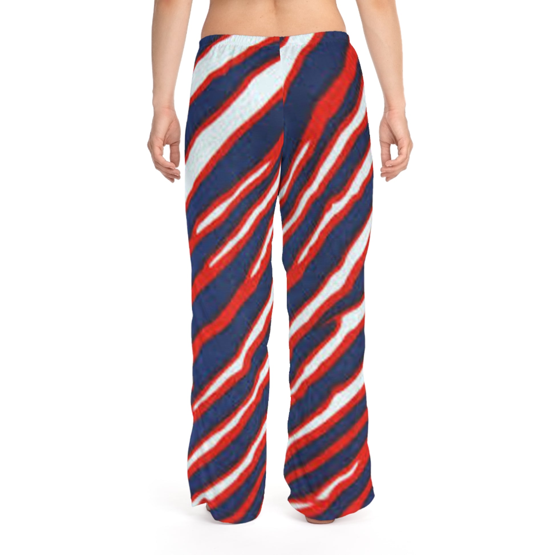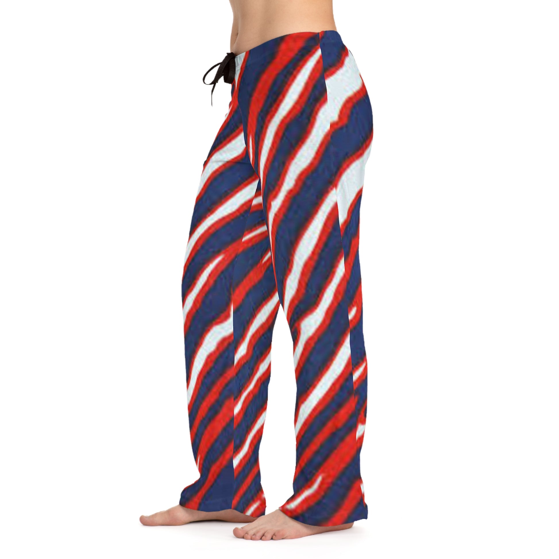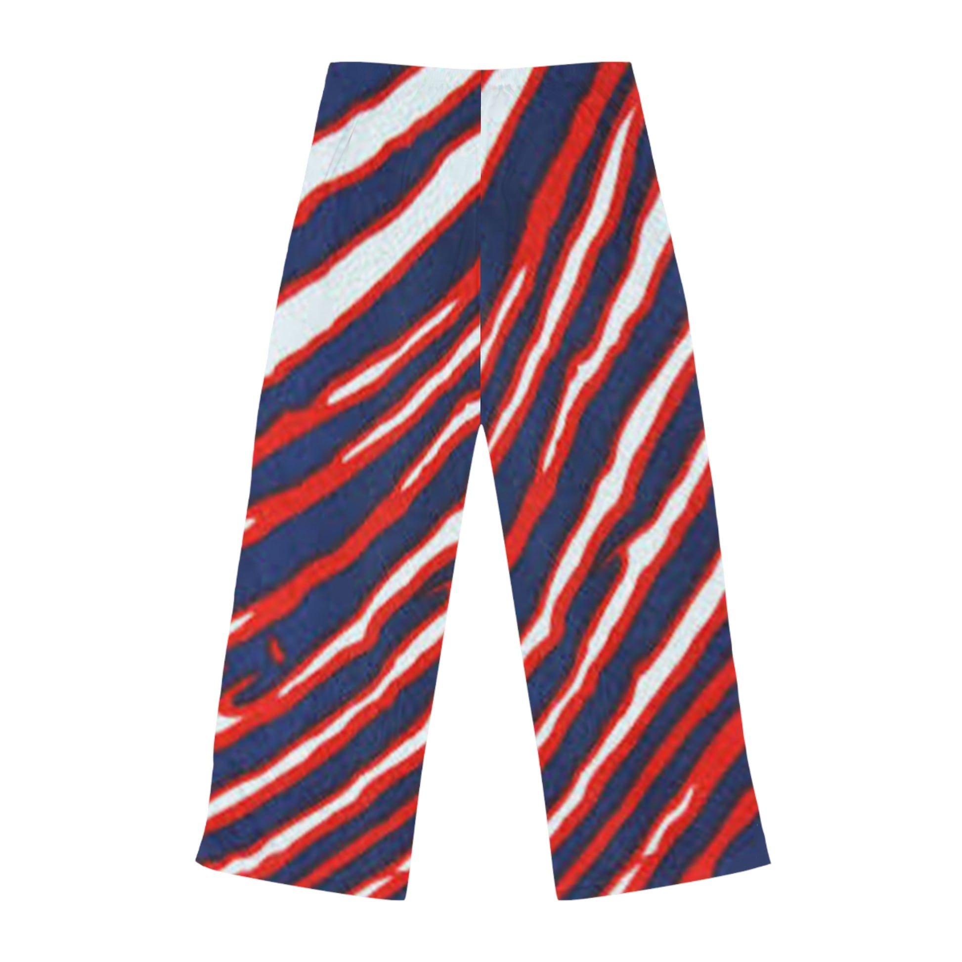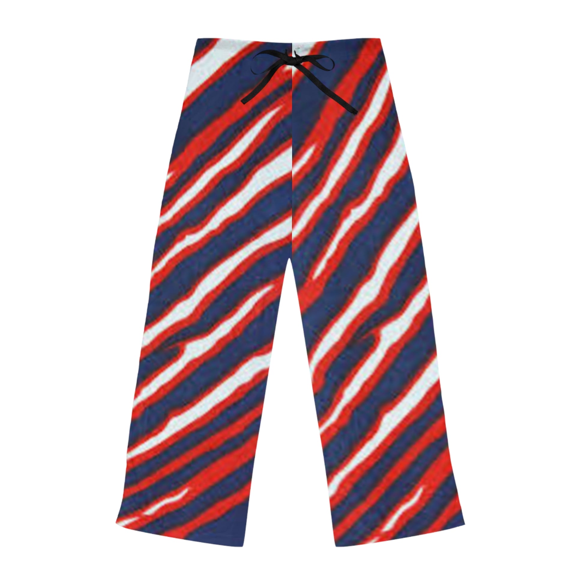 Buffalo Zubaz Pajama Pants for women, made from soft 100% polyester jersey with a vibrant all-over print. These pajama pants provide a relaxed and comfortable fit, perfect for lounging at home or sleeping in style. Ideal for women who love bold and fun patterns, these pants are great for cozy nights in during the holidays or for pajama parties with friends.