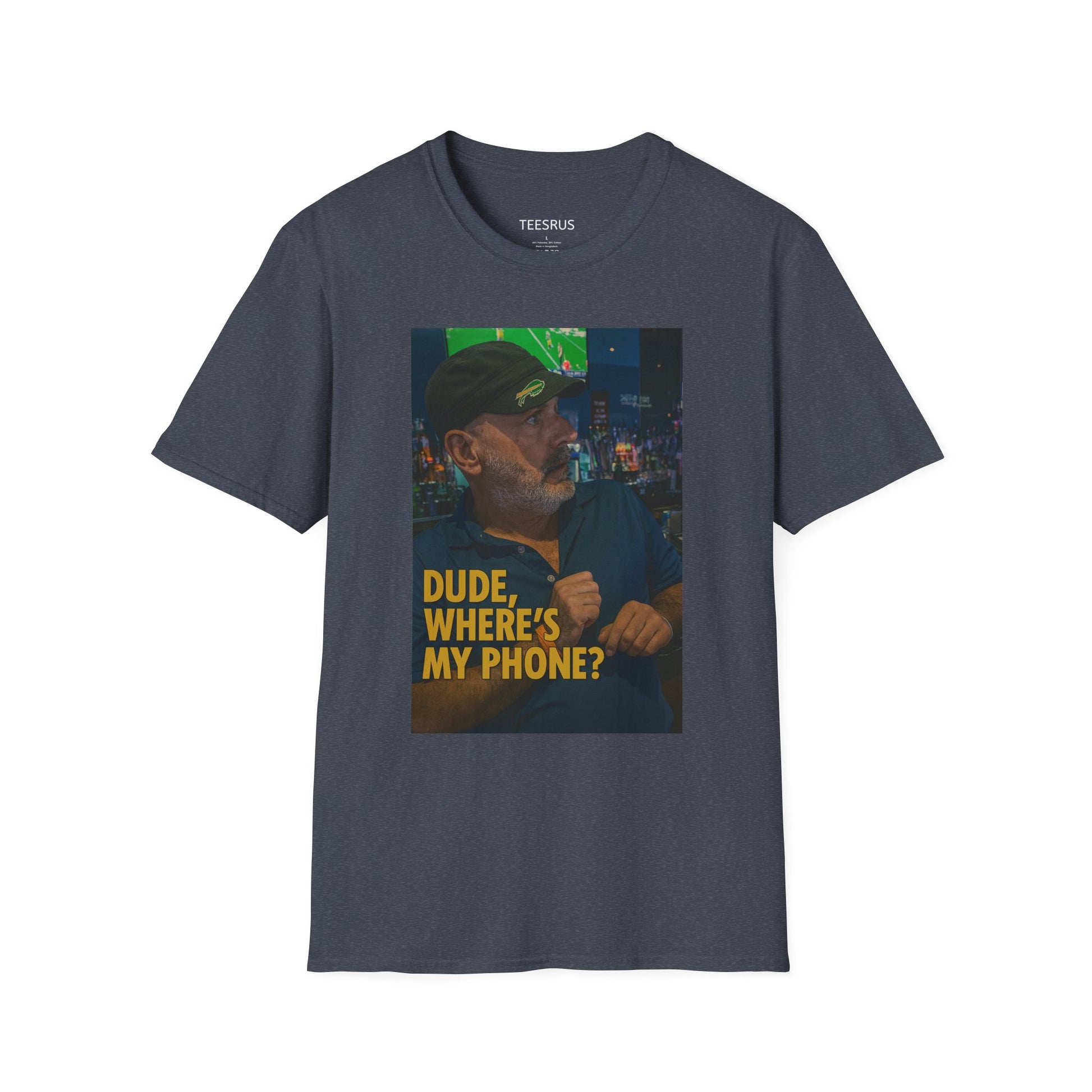 Funny Unisex T-Shirt | "Dude, Where's My Phone?" | Humor Gift, Casual Wear, Everyday Essential, Gag Gift, Party Tee