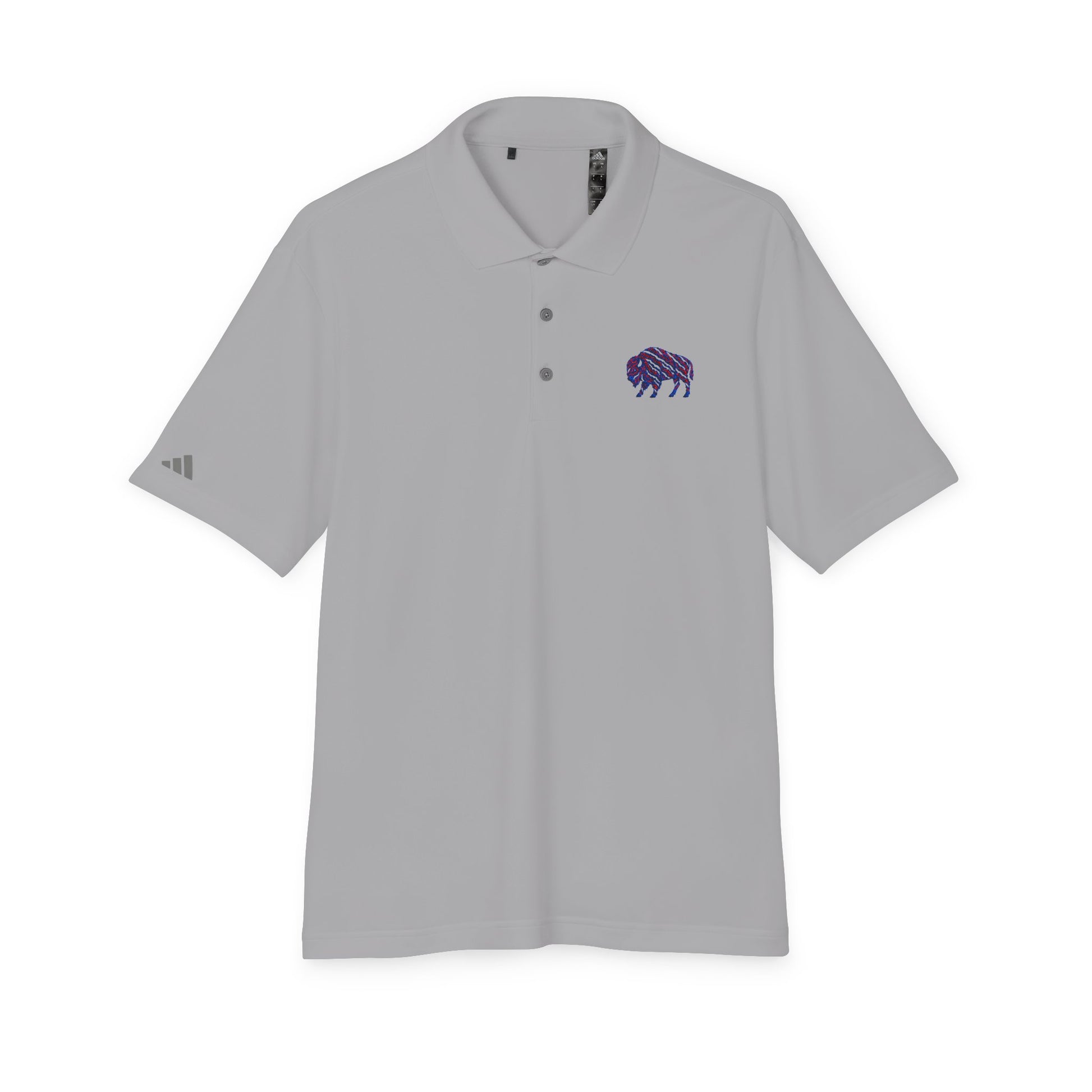 Sporty and stylish standing buffalo Addidas golf shirt that provides comfort and performance for active adults. Perfect for golfing, outdoor activities, or casual wear. Ideal for sunny days with UPF 50+ sun protection. Fits those looking for a high-quality, sustainable polo shirt with a classic design.