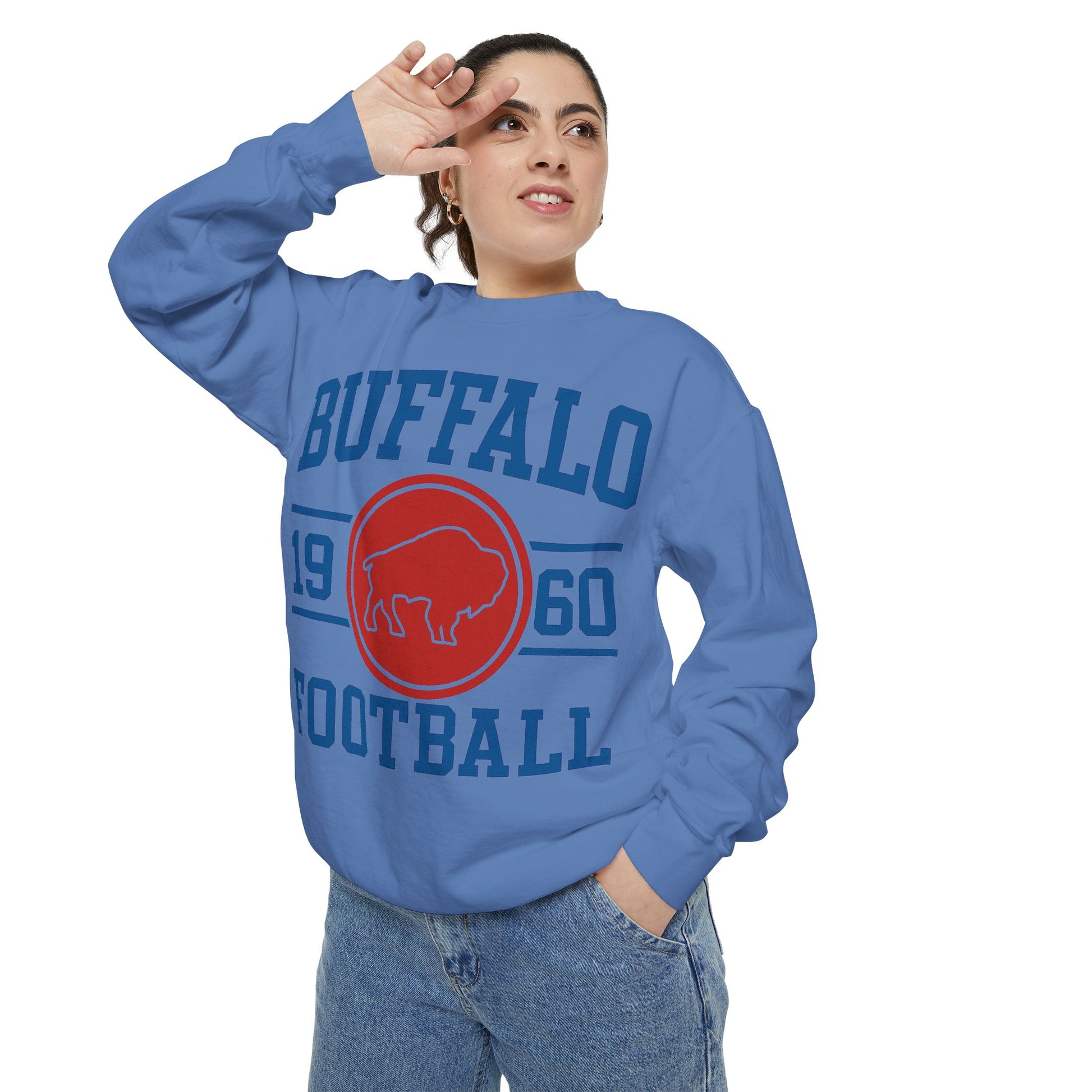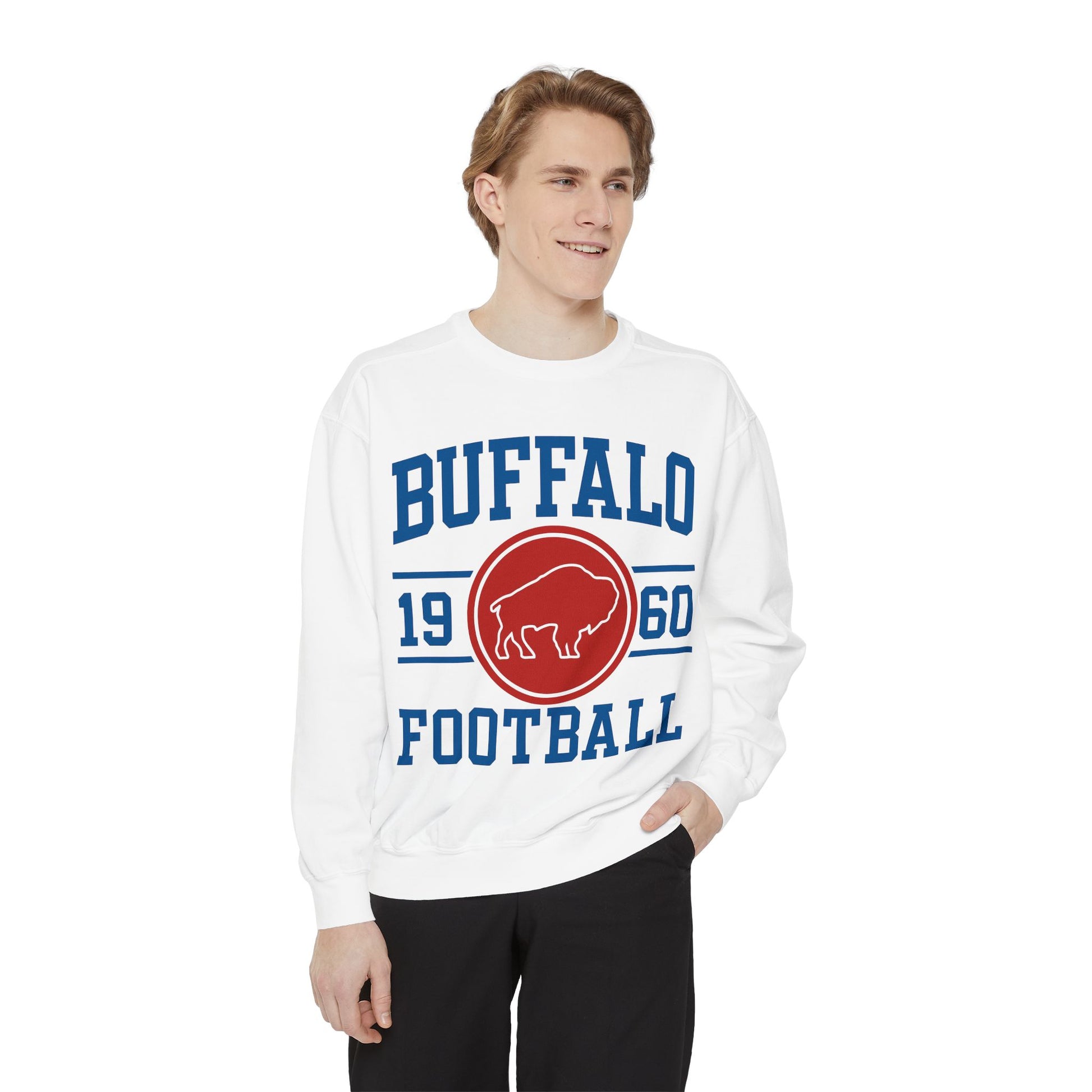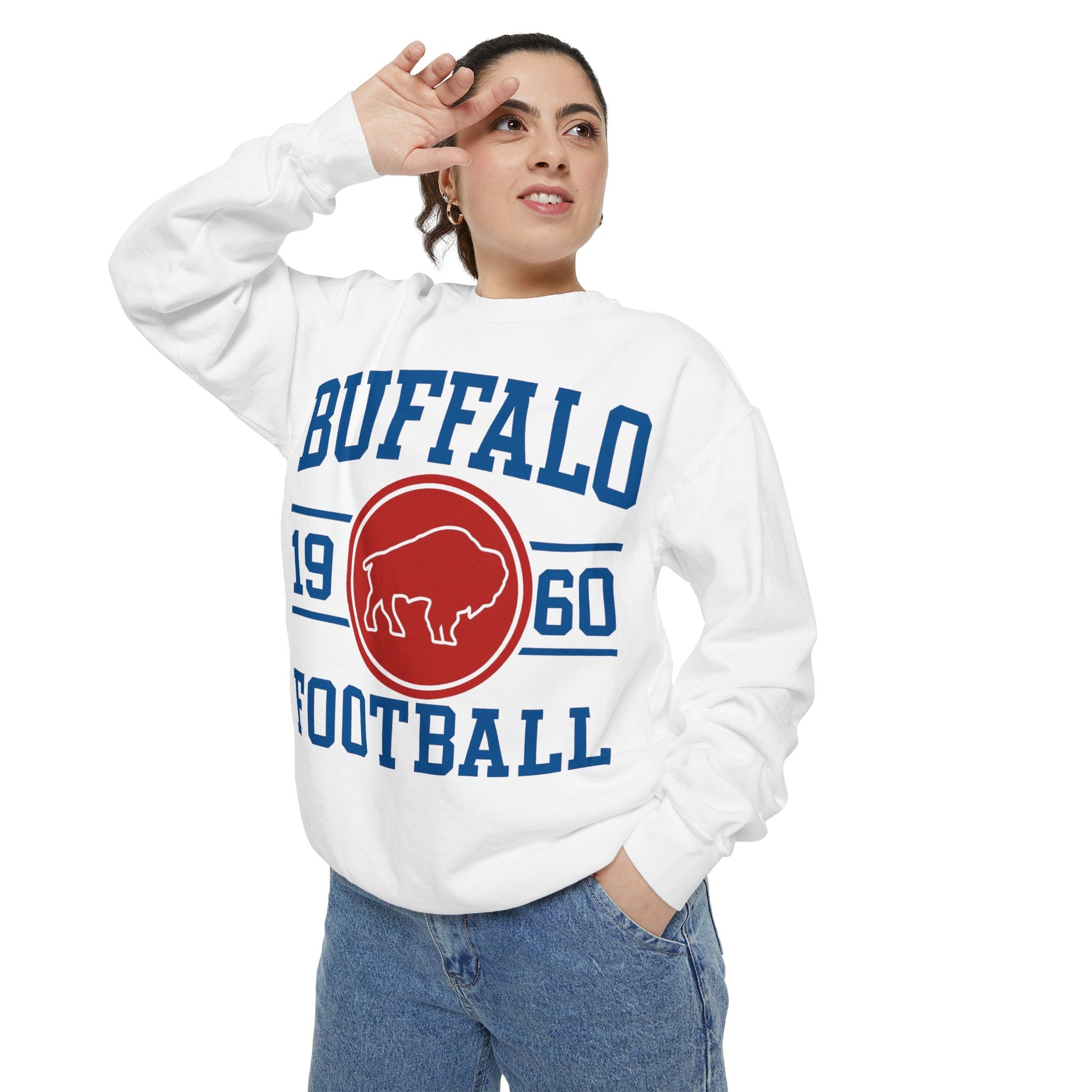 This Vintage Buffalo Football Sweatshirt exudes a nostalgic and sporty vibe, perfect for cozy days and game nights. It is relevant for football fans, vintage enthusiasts, and anyone who appreciates a comfortable yet stylish look. Ideal for sports gatherings, game nights, and casual outings.